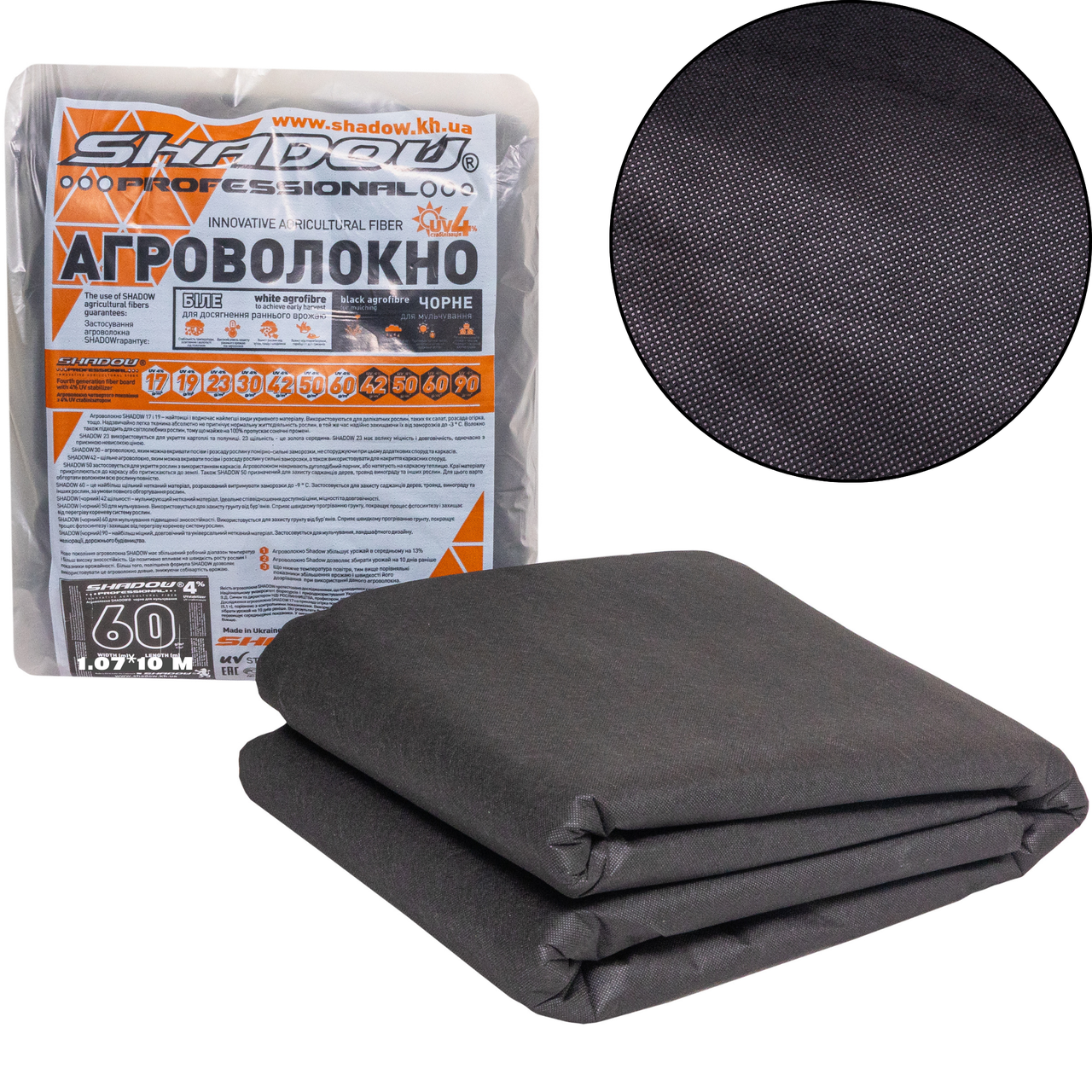 ТМ "Shadow" пропонує чорне агроволокно на метраж щільністю 60 г/м2, ширина відрізу 1,07, а довжина його 10 метрів, що дуже зручно та вигідно для невеликих ділянок.